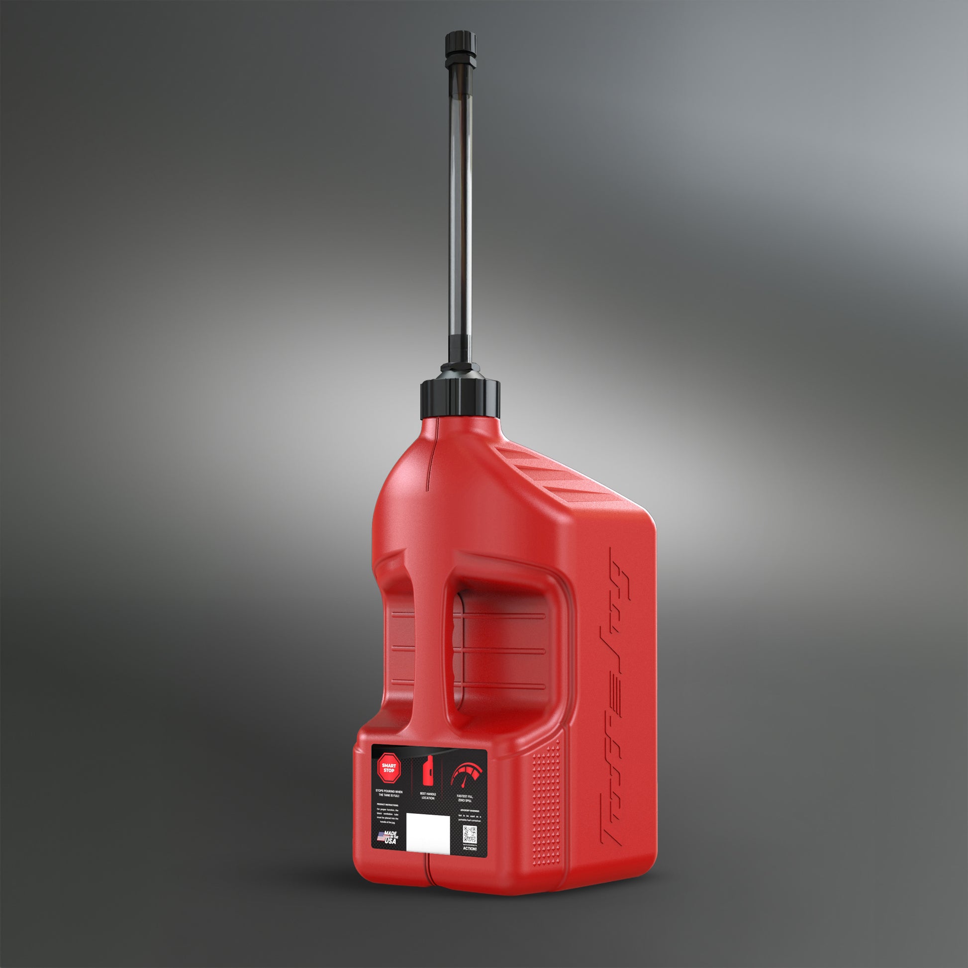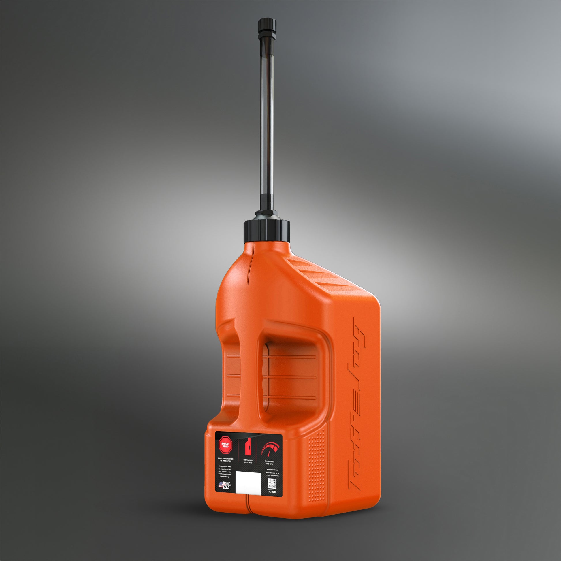 Tuff Jug can be equipped with an Auto Stop Spout or Ripper Cap. Both options are engineered for the fastest fill rates on the market- beating the competition by 25-500%! The superior side handle location ensures effortless control, eliminating awkward movements while pouring. The clear view strip lets you easily monitor fluid levels, so you always know when it's time to refill. There are no external vents to break or spill from thanks to our proprietary internal venting technology. Plus, our patent-pending auto-stop feature prevents spills and messes, making every pour smooth and hassle-free!
