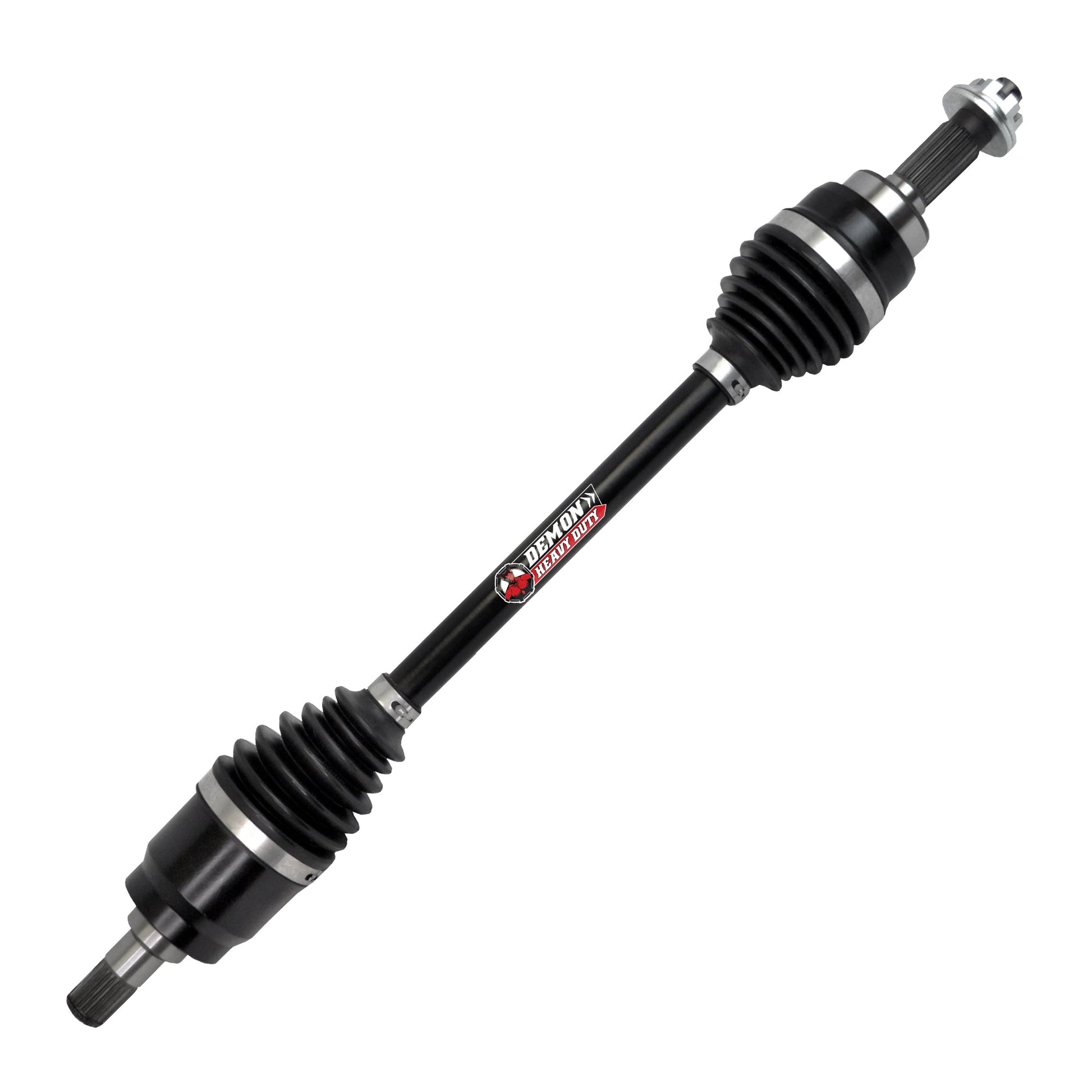Demon Heavy Duty Axles are built using larger CV joints and shafts, paired with our proprietary dual heat treatment process, and 4340 Chromoly Steel inner CV cage gives these the axles the edge it needs for superior strength and longevity.