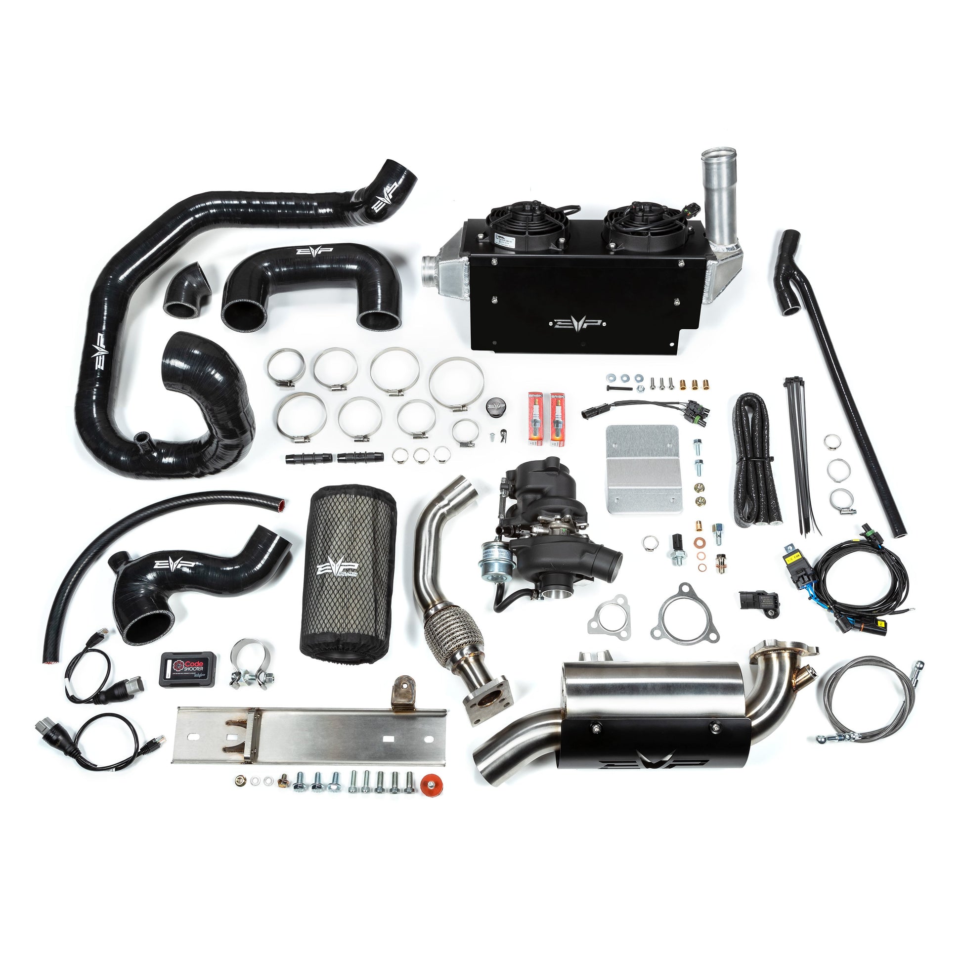 EVP DISCLAIMER: An EVP CodeShooter ECU flashing device is required for all EVP Defender Turbo Systems. If you do not already own a CodeShooter, please ensure you select the proper kit.